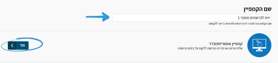 בדף הבית בחר בצור קמפיין דיוור ו קרא לו "טיפ לנרשמים מספר 1 "
