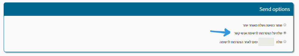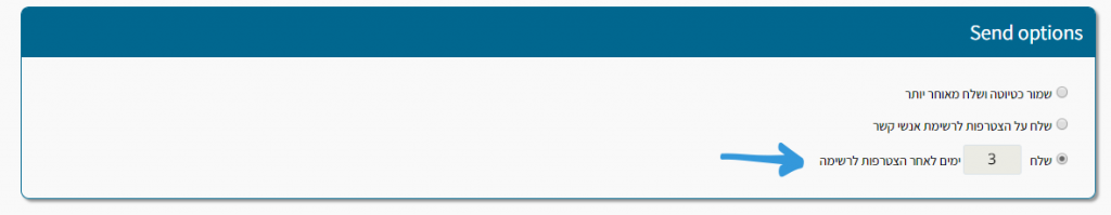 במסך האחרון של האשף בחר ב אופציה שלח מספר ימים לאחר הצטרפות איש קשר לרשימה