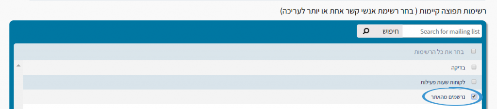 יצר רשימת תפוצה אליה ישלחו המסרים, וודא שנרשמים מהאתר מצורפים לרשימה זו לצורך ההדגמה נניח ששם הרשימה הוא "נרשמו באתר"