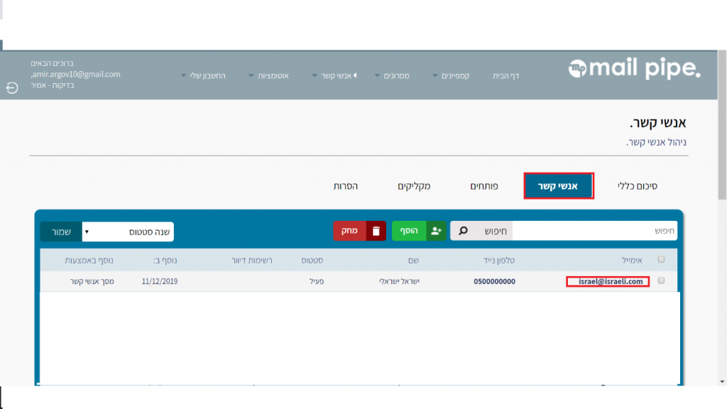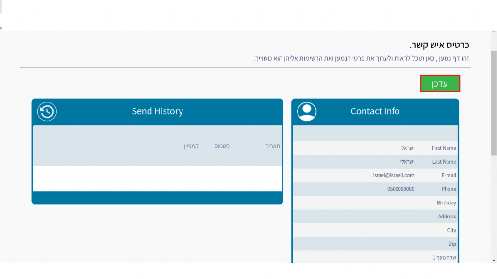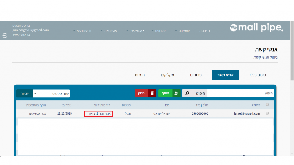 שלב 6: כעת ניתן לראות בדף אנשי הקשר את רשימות התפוצה אליהן שייך איש הקשר.