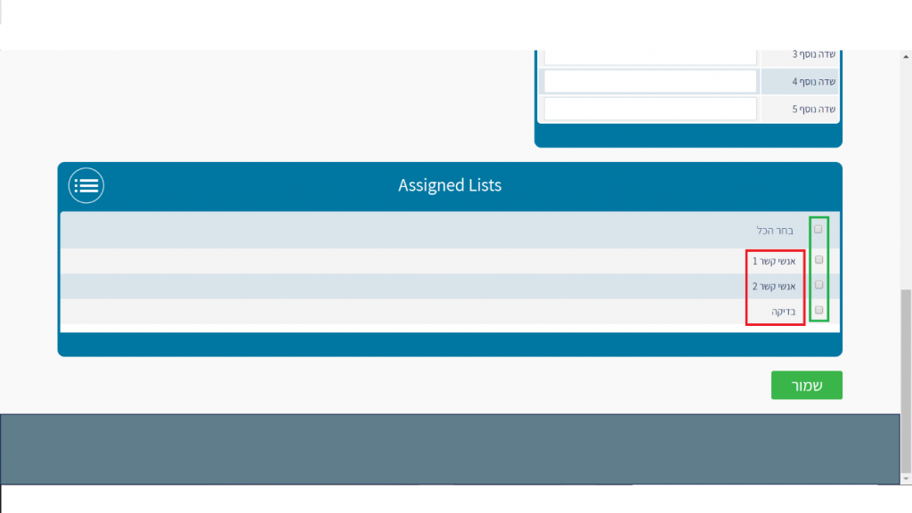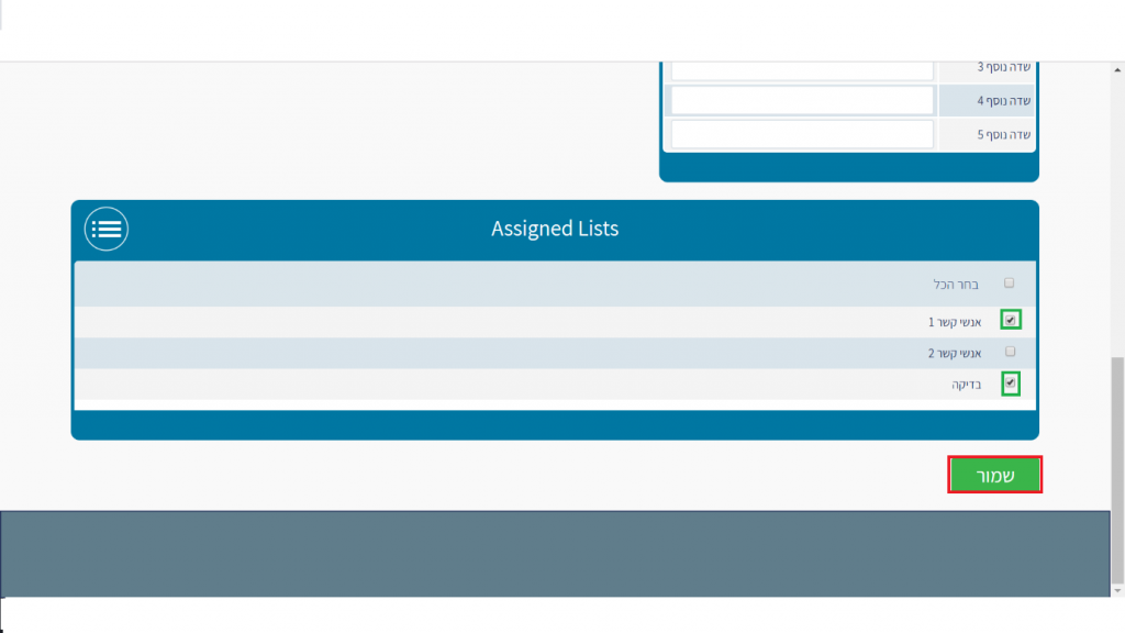 שלב 5: כעת נסמן את הרשימה \ רשימות (ע"י מילוי קוביות הבחירה) אליהן נרצה להוסיף את איש הקשר , ונלחץ 'שמור'.